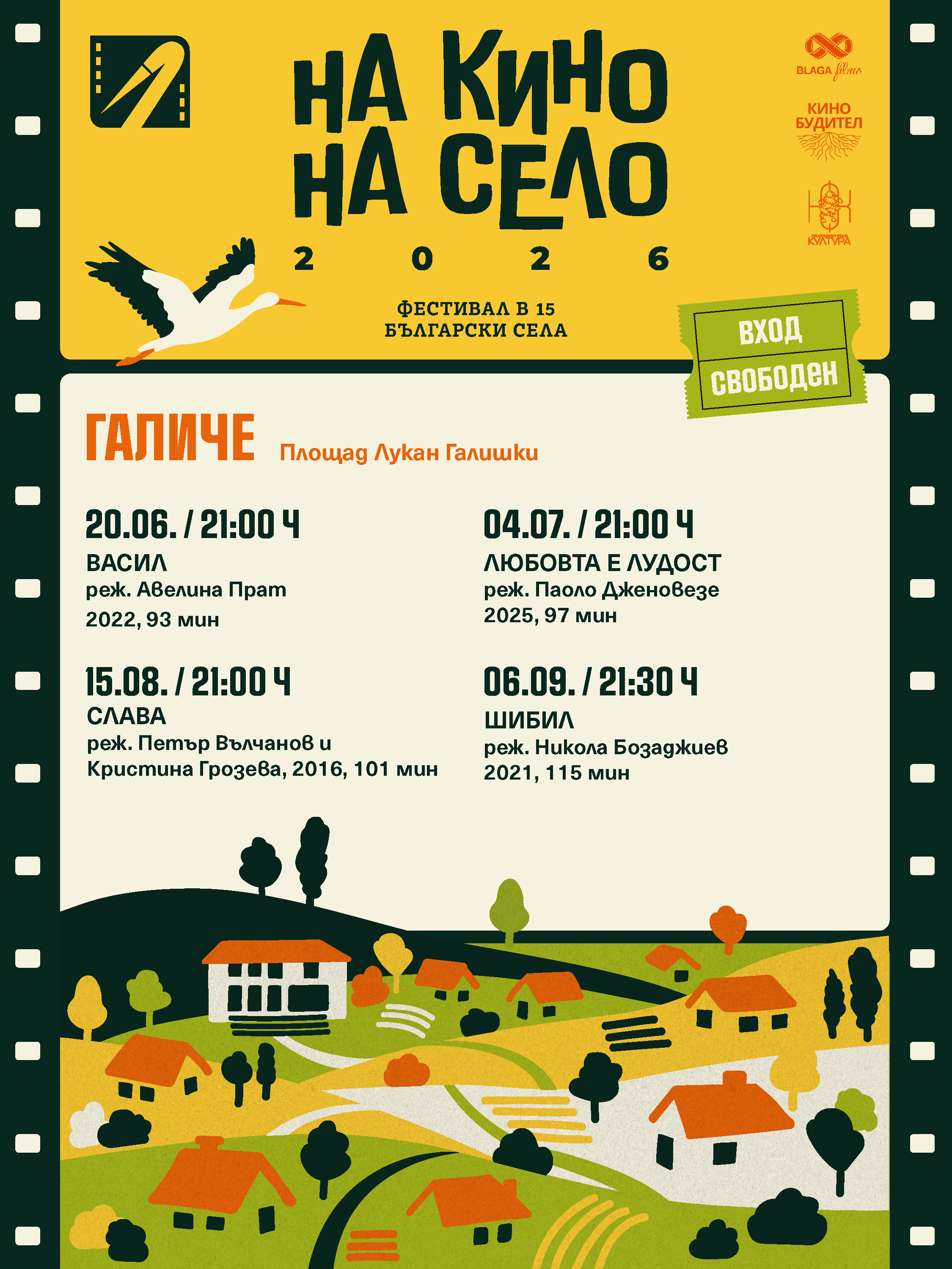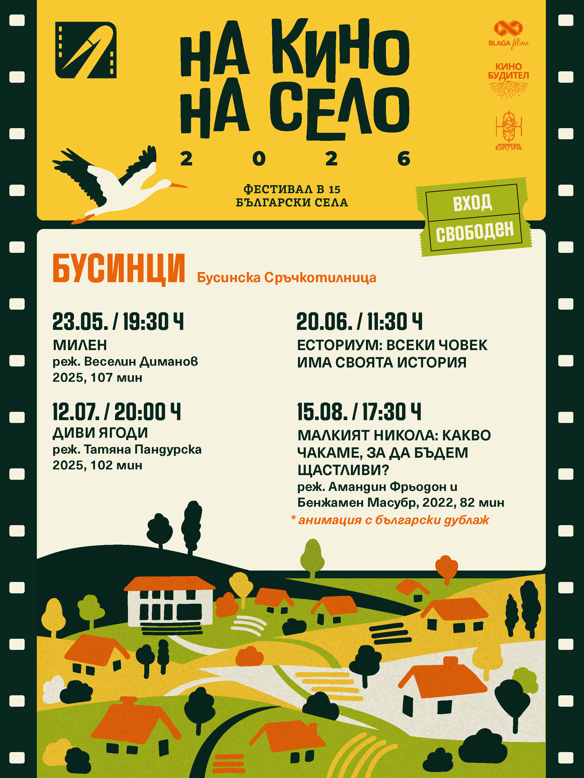 Кино-села 2026: БУЗОВГРАД БУСИНЦИ ВЕЛИЧКОВО ВЕТРИНЦИ ГАБРОВНИЦА ГАЛИЧЕ ГАНЧОВЕЦ ДОЛНА ДИКАНЯ ДОЛНИ ВАДИН ЖИТНИЦА КОВАЧИЦА КУРТОВО КОНАРЕ ЛИК НЕГУШЕВО СМОЛЯНОВЦИ